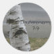 A white birch stands against a dark background on this sticker featuring bible verse Deuteronomy 7:9.