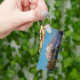 This keychain has a landscape picture as the background. The landscape is a view of Mount Rainier with a full moon in the evening sky. In white text, on the front side: DevelopingNatureGallery.com. On the back, in white lettering: Mount Rainier with Super Moon, 2014. Copyright ©2023 Kimberly J Tilley.