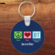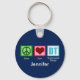 Cute personalised developmental therapist keychain gift. Peace love and developmental therapy on dark blue background with your custom text.