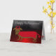 Happy Halloweenie! Whimsical Dachshund dressed up as a devil for Halloween