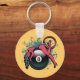 Retro devil girl draped over an eight-ball, with felt-green splatter. All shirts, all sizes.