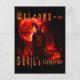 Welcome to the Devil’s Playground. Horror Halloween - Perfect for adult adults men man women woman teenager teenagers kids – Devil or Satan staring on a cemetery by night with a blood red moon. Scary and creepy terrifying monster or demon walking on a graveyard by Halloween with gravestones or tombstones and jack-o-lanterns. Glowing eyes and large ram horns.
