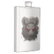 The product is a good size and came exactly as it was pictured. The lid is not attached to the flask, which could be dangerous on drunken nights... The print came out surprisingly well and looks very sharp. Would definitely recommend.
