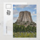 This postcard features a watercolor portrait of Devils Tower National Monument in Wyoming.