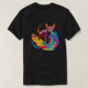 I give wanted to give this a 4 instead of a 5 because these Basic DARK T0shirts run unexpectedly SLIM or Narrow. Which is great if you do not have a potbelly, but I have a paunch. It isn't the shirt's fault that I've got a beer belly. The design and shirt itself is a quality cotton shirt. The color is more of a deep purple, but still a very pretty color. The Basic DARK T-shirts run a bit SLIMMER than the Basic Ts. The neck is a fraction narrower (or seems to be narrower) also. I'm a paunchy middle-aged woman and my neck is 12 inches (31cm) thick and the neckline fell about the same as in the photo of the man, and I had the desire to tug it a bit. So if you're a thick necked man or like loose shirts, be aware these are slimmer shirts. Once I get rid of my lockdown paunch it'll look great. The shirt washed well in cold water with no apparent bleeding. We don't have a dryer, so it hung dry. Did not shrink. Love the colors and the design. The design looks smaller on my shirt than it does on the model on-line. But still, it looks good on the shirt. The printing looks as it does on the model, just the size seems fractionally smaller. Washed garment in cold water, hung dry and design appeared unaffected.