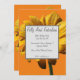 A stylish silver frame and text on dew drops daisy photo and orange background birthday invitation.