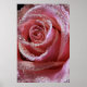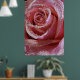 A dusky pink rose crying dewdrops on a Spring day, fresh as the morning dew.