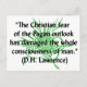 Text says: "The Christian fear of the Pagan Outlook has damaged the whole consciousness of man." D.H. Lawrence. Great t-shirt gift for Pagans, Wiccans and others who revere Nature.