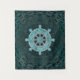 Dharma Wheel - Dharmachakra Silver and turquoise Tapestry