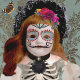 A beautiful, slightly more formal invitation for your family-friendly Day of the Dead celebration or vigil. Traditional 'La Catrina' face makeup is digitally modelled on the endearing face of an antique Victorian doll in my personal collection. A gold-on-silk-damask of a soothing blue-green provides an elegant background. Seal your invitations with matching La Catrina stickers, also available from Cheeky_Poppets.