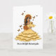 You are the light that never fades card inspired by Día de los muertos. A girl with marigolds in her hair, wearing a long yellow dress, and marigolds in her hand with orange monarch butterflies flying around. An illustration celebrating remembrance, love, and light. Inspired by tradition and the beauty of marigolds.