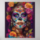 Experience the vibrant allure of Mexico's Dia de los Muertos with this stunning woman adorned in traditional sugar skull makeup art. Embrace the colourful celebration with intricate designs, vivid flowers, and the symbolic skull, capturing the essence of this cherished holiday. Dive into the cultural richness and beauty of Day of the Dead as this artistry embodies the Mexican heritage and festive spirit.
