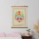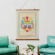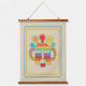 Diablo Huma Mask Tapestry - Beige Background, printed on fabric and trimmed with wooden top and bottom rails.. NOTE: Artwork is NOT woven but photo art of a woven Inca mask.