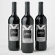 Diagonal black, grey, metallic striped print wine label