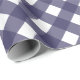 Sophisticated wrapping paper features dar blue and white diamonds in a bold diagonal buffalo plaid. The dark blue and white gingham pattern was designed from scratch.