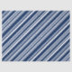 Add flair to your presents with tissue paper featuring diagonal indigo and white stripes. The navy blue and white lines vary in width to create a modern stripe pattern.
