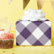 Sophisticated wrapping paper features purple, lavender, and white diamonds in a bold diagonal buffalo plaid. The purple and white gingham pattern was designed from scratch.