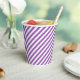 Diagonal purple and white stripes pattern paper cups