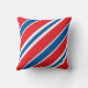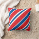 A striking pattern of bold diagonal stripes in alternating red, blue, and white. The clean, geometric design creates a visually dynamic and energetic appearance.