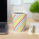 Diagonal stripes in vibrant colors—pink, blue, orange, green, and yellow—against a white background. The pattern is bright and energetic.