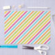 Diagonal stripes in vibrant colors—pink, blue, orange, green, and yellow—against a white background. The pattern is bright and energetic.