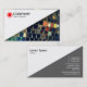 A modern business card template divided diagonally into two halves in this version the upper left half has a drop shadow which overlays the lower half. On the front there is a photo of abstract image in the lower right half The theme is repeated on both the front and the back of the card however the lower right half on the reverse of the card has a grey or coloured background and the contact details text is placed in this area, there is also no drop shadow on the back. Logo/Decoration along with the company name and business type/headline on the front in the top left. The Name and job title/position are in a same position on the reverse side of the card.This template can be customised in a variety of ways and would be suitable for many uses.