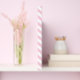 Diagonal white and pink stripes create a soft, playful pattern. The alternating colors give a sense of simplicity and lightheartedness.
