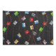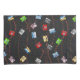 The artwork on this Pair of Pillowcases is an original graphic pattern by HomeWare of old fashioned telephones, the rotary dial styles used before push buttons and cell phones existed. Originally they were always black. But then things became exciting when phones came in colours like light blue, gold, green, white, and red for emergencies! The old phones plugged in with spiral cords that stretched, represented by the red zigzag lines in the pattern being stretched to the max. The background is a black texture with flecks of colour, like the faux marble patterns on the modern material of the 1950s, linoleum. The rotary dials had all the numbers and symbols, but the number 9 in the graphic is the number to dial for an outside line in large companies.