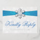 Diamante Snowflake & Blue Ribbon Winter Wedding Foil Invitation Postcard