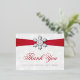 Diamante Snowflake & Red Ribbon Winter Wedding Foil Invitation Postcard