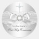 First Holy Communion Sticker. Elegant Silver diamond bow & pretty white lace. Please Note: All flat images, they do not have real bows or jewels!