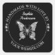 Personalise this diamond butterfly "Handmade With Love" sticker with your name and website on black background and circle design with white text. Click “Edit using design tool” to change colours and type styles.