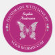 Personalise this diamond butterfly "Handmade With Love" sticker with your name and website on deep fuchsia background and circle design with white text. Click “Edit using design tool” to change colours and type styles.