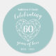 Diamond celebrating 60 years of love anniversary stickers. Simple outline heart stone effect line art graphics grey aqua blue and white 60th Diamond Wedding Anniversary round stickers. Customise with your own sixtieth diamond wedding party details. 60th Anniversary is traditionally associated with diamond's and the heart symbolises love. Graphics and design by Sarah Trett for www.mylittleedenweddings.com on zazzle.