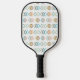 This pickleball paddle has a mid-century modern design of sets of three diamonds in various retro colours scattered about the design. If you like the design but prefer different colours, message me.