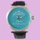 Personalise name and your message in white script on teal background with sparkling white diamond crown.