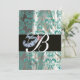 DIAMOND FEATHER BLUE WHITE SILK DAMASK MONOGRAM INVITATION