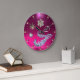 DIAMOND FEATHERS AND STARS PINK GEMSTONE MONOGRAM LARGE CLOCK