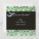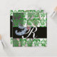 DIAMOND FEATHERS GREEN SILVER SILK DAMASK MONOGRAM INVITATION
