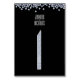A simple yet elegant modern wedding reception table number one card in black and white with blue accents. To the top edge of the card are faux diamond effect glitter sparkles. The table number also has a faux diamond effect.