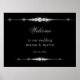 A bar of glittery diamonds decorate this sign that says Welcome to our wedding.