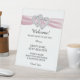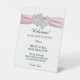 Diamond Hearts Pink Ribbon Wedding Safety Pedestal Sign