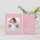 A lovely diamond-lace pattern on the left half the invitation has a double framed photo window. The other half is solid pink and holds your sentiments. The cross can be dragged to any location, made larger or smaller or eliminated making this invitation suitable for any occasion.