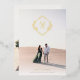 This crisp white wedding invitation features a modern diamond-shaped monogram at its centre, with the bride and groom's initials prominently displayed. The monogram is surrounded by classic typography in a grey and shiny gold foil, adding a touch of elegance to the design. Delicate floral details further embellish the invitation, giving it a romantic and timeless feel. The overall design is sophisticated and unique, making it a perfect choice for a stylish and sophisticated wedding.