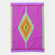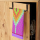 This kitchen towel has a mosaic tiles / beads pattern with a diamond motif centred, in Serenity, a Spring Season 2015 Pantone colour palette, with lots of bright, almost neon colours, fuschia, berry, lavender, orange, robin's egg blue, neon lime green, golden yellow buttercup, and creamy tan grout. Can be visualised as mosaic tiles, or beading. Art by Kristie Hubler. For Spring Season 2015 fashion trend colours.