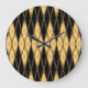 Diamond motif: gold-black elegant pattern. large clock