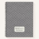 Personalised stylish notebook with your name, the title and date in elegant calligraphy features a dark grey Moroccan diamond pattern background. Perfect for sketching or keeping track of notes and ideas. Exclusively designed for you by Happy Dolphin Studio!