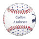 This is a great baseball to use as an end of the year presentation to a player. Or change the text completely and give as a keepsake to a coach. It features a dark blue silhouette image of a baseball player leaning on a bat. There are three text fields for your custom text, also in blue and red. The image and the text are placed on a white background. Half of the ball is an attractive pattern of red, light and blue diamond images on a white background. Make it say whatever you'd like!