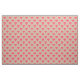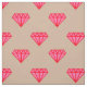 Fabric with a pop art pink & red diamond print on a beige background.