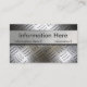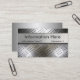 A metallic diamond pattern and a smooth plate for your name or business name, address and phone number in silver stainless steel look chrome on the front of the card gives a bold, unique 3d look cool business card. Easily customise with your own information. Use the grey bold font shown or easily change the font style and colour. A unique looking card, especially great for industrial, skilled trades in construction and building occupations, automotive business, etc. More information can be put on the back as well on the smooth brush silver metallic looking background. Printed on paper, not actual metal. A strong business card that stands out from the rest.
